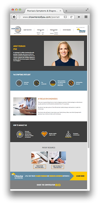 Partnering with a renowned photographer for a stunning photo-shoot, these five people living with psoriatic disease became the heroes of the campaign and were featured on a robust website and social media push.